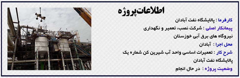 پایان عملیات بهینه سازی و افزایش ظرفیت ترانسفورماتور قدرت واحد شماره یک نیروگاه سد دز : مدیر عامل شرکت نصب، تعمیر و نگهداری نیروگاه‌های برق‌آبی خوزستان از باز طراحی و ارتقای ظرفیت ترانسفورماتور قدرت واحد شماره یک نیروگاه دز و نصب و راه اندازی آن با موفقیت خبر داد. | تعمیر و بازسازی اویل کولر اپربراکت نیروگاه سد کارون ۳ : مدیر کارگاه پمپ و شیرآلات شرکت نصب، تعمیر و نگهداری نیروگاه‌های برق‌آبی خوزستان از انجام عملیات تعمیر و بازسازی یک دستگاه اویل کولر مربوط به اپربراکت نیروگاه سد کارون ۳ خبر داد | پایان عملیات تراشکاری محفظه توربین ( Turbine Pit ) واحد شماره ۵ نیروگاه سد دز : مدیر پروژه بهینه‌سازی نیروگاه سد دز در شرکت نصب، تعمیر و نگهداری نیروگاه‌های برق‌آبی خوزستان از پایان موفقیت‌آمیز عملیات تراشکاری محفظه توربین ( Turbine Pit ) واحد شماره ۵ نیروگاه سد دز خبر داد. | عملیات دمونتاژ شفت ژنراتور ولاوربراکت واحد شماره ۲ نیروگاه مارون بهبهان با موفقیت انجام شد : معاون فنی و مهندسی در شرکت نصب، تعمیر و نگهداری نیروگاه‌های برق‌آبی خوزستان از خارج نمودن مجموعه شفت ژنراتور و لاور براکت واحد شماره ۲ نیروگاه مارون بهبهان خبر داد . | عملیات شستشوی سیم پیچ ژنراتور واحد شماره 4 نیروگاه سد دز : مدیر تعمیرات ناحیه دز در شرکت نصب، تعمیر و نگهداری نیروگاه‌های برق‌آبی خوزستان از انجام موفق عملیات شستشوی سیم پیچ ژنراتور واحد شماره 4 نیروگاه سد دز خبر داد. |